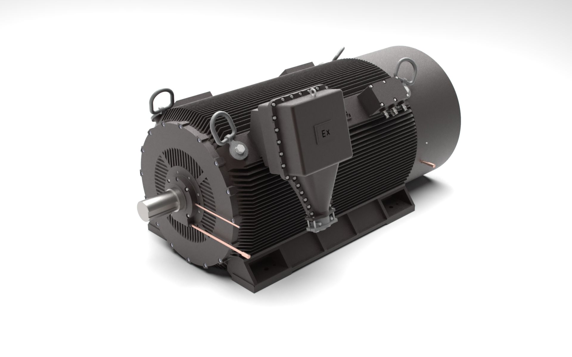 功率范围:160kW~3150kW额定电压:1000V、6000V等基准工作制:S1应用领域:用于驱动风机、水泵、压缩机、磨煤机等负载,该产品适用在空气中含有爆炸性气体以及可燃性粉尘的环境。技术特点:电机具有结构紧凑,效率高、体积小、低噪音、低振动等特点,适用于转矩要求较高的磨煤机等负载。