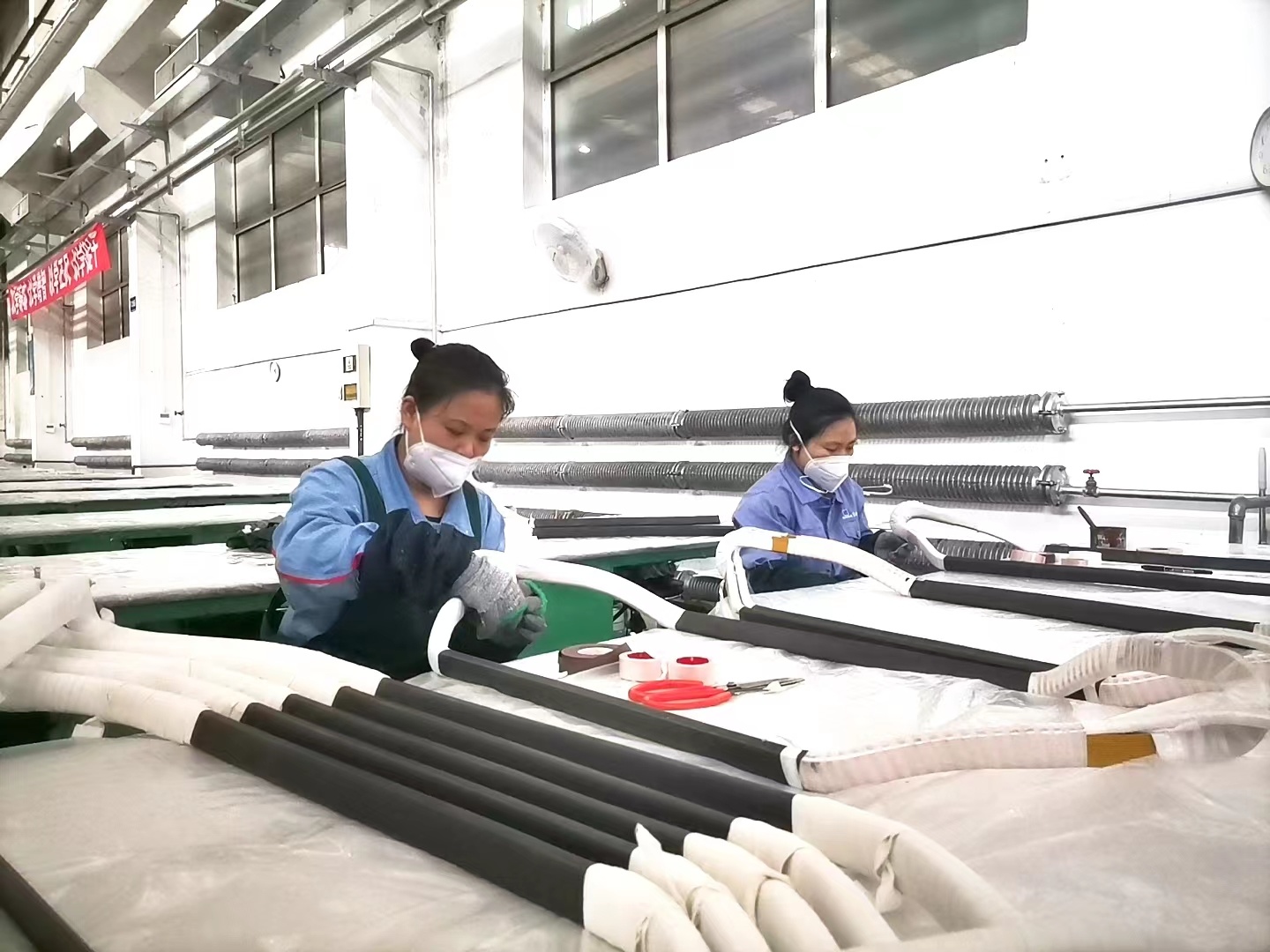 中秋节当天,早晨8点,电工车间二栋现场,一对姐妹花早早便进入了工作状态,何红竹和刘雪松是电工车间端部组的核心骨干员工。她们手里正在包扎绝缘的产品正是假期过后马上便要交货的重点产品,为了追赶生产进度,两人主动放弃了假期,一早便来到工作现场,投入到紧张的工作中。“现在时间紧、任务重,我们一定会尽全力将这几台产品的生产进度追赶上,希望可以为公司发展尽一些绵薄之力。”朴素的话语,灿烂的笑容,她们用坚守诠释了“欢庆”,用行动书写了“热爱”。