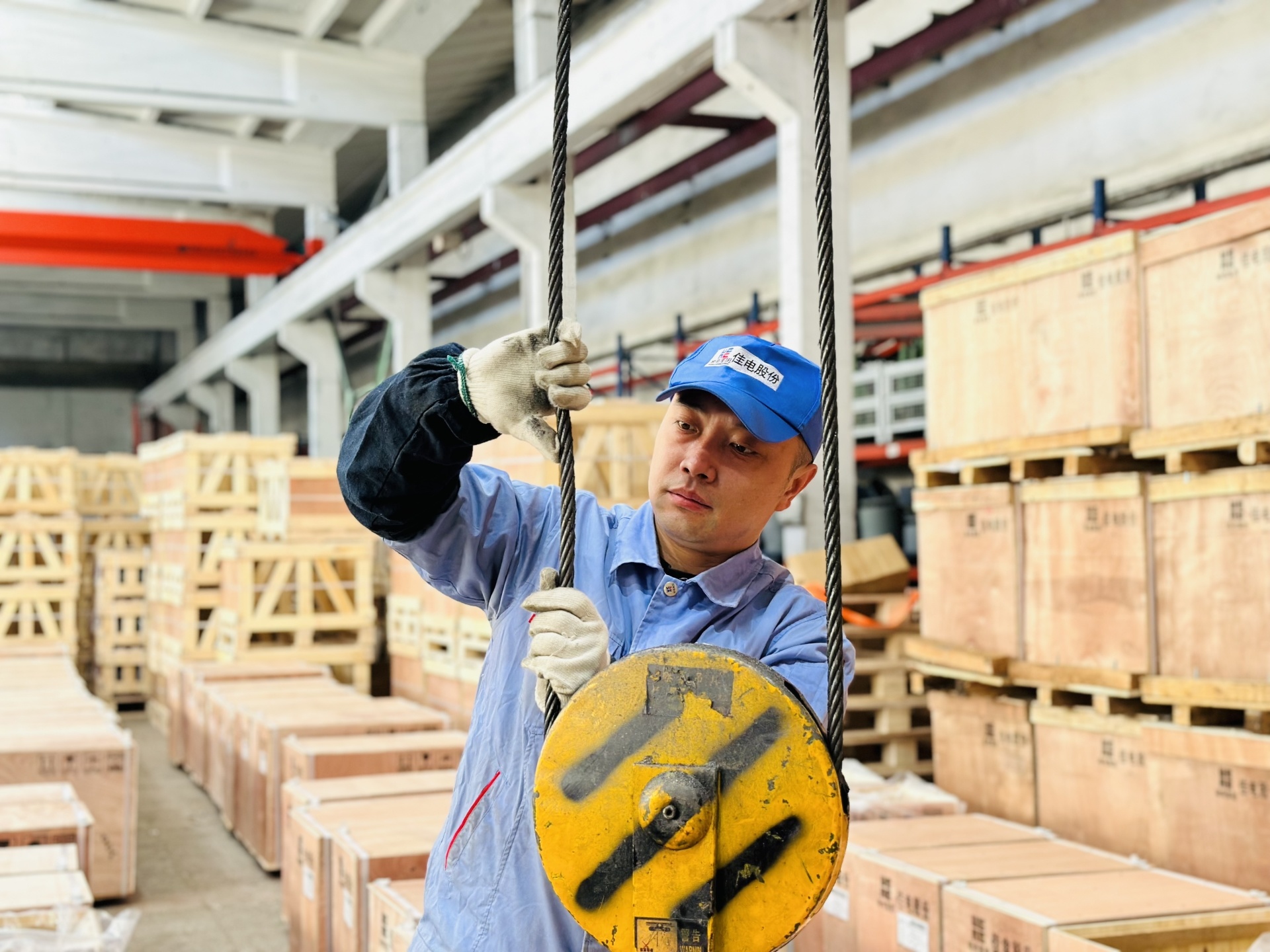 喷包车间班组长费连军,每天工作开始前,都会认真做好设备的检查工作,彻底排查工作隐患,确保每一个生产环节的安全。在工作结束后,他还会把当日干过的活重新检查一遍,对当日的工作做到心中有数,并对包装产品质量进行检查,对所有操作的设备做好预防性维护,给电机包上保护袋,卧箱、封箱、钉上唛头和条码。数十年如一日,费连军一直重复这样的工作流程和对产品包装的严格把控。“把每一台电机成功交到客户手中,这是我最开心的事。”为了保证急用电机,顺利交付到客户手中,在双节期间,费连军一日无休,在他的带领下,班组成员团结一心,严格按照包装规范开展工作。