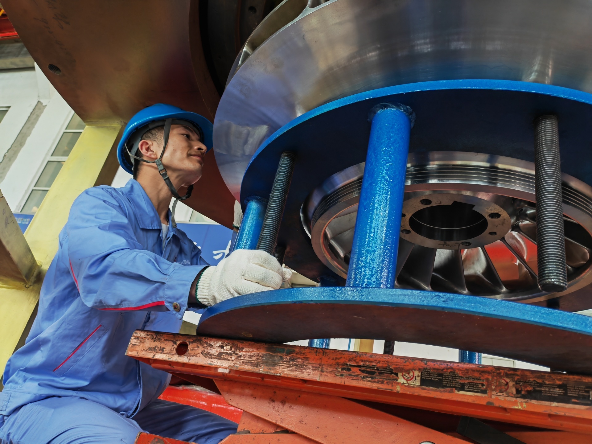“将产品从试验台架吊运下来,依次拆卸导叶、叶轮,再对叶轮平衡孔进行扩孔处理,合成后再重新吊装在试验台架上……”,这就是屏蔽车间装配班组组长孙立佳这几天带领组员一同进行的产品拆装任务。为了保证重点项目产品试验的顺利进行,不停工、不等待,今年44岁工作经验丰富的孙立佳带领班组成员,一日无休、加班加点随时待命,积极配合试验台进行产品轴推力试验。“能够参与重点项目的生产任务很幸运,能为产品的顺利试验、按期交付贡献出一份力量,我们很自豪。”在他的带领下,班组成员一丝不苟,严格按照装配规范,开展产品拆装、紧固任务,一天反复拆装2-3次,有效保证了产品试验的顺利进行。