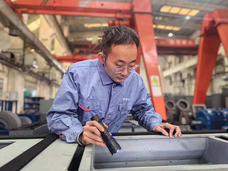 因公司重点产品消氢风机交货工期紧,加工难度大,屏蔽车间金加工一线操作者金天龙、李绍奎主动坚守岗位,对该项目重要部件机座与转子进行精加工任务。拥有着10余年丰富经验的两人,严把精加工质量大关、严管生产现场作业安全、严控现场加工进度。在国庆期间顺利完成了两台机座、两根转子的精车任务,为后续生产任务夺回先机、抢出优势。“看着机座两端精车止口一点点成型、清晰,最后质检合格,抢出工期,我们的努力与付出都值了。”