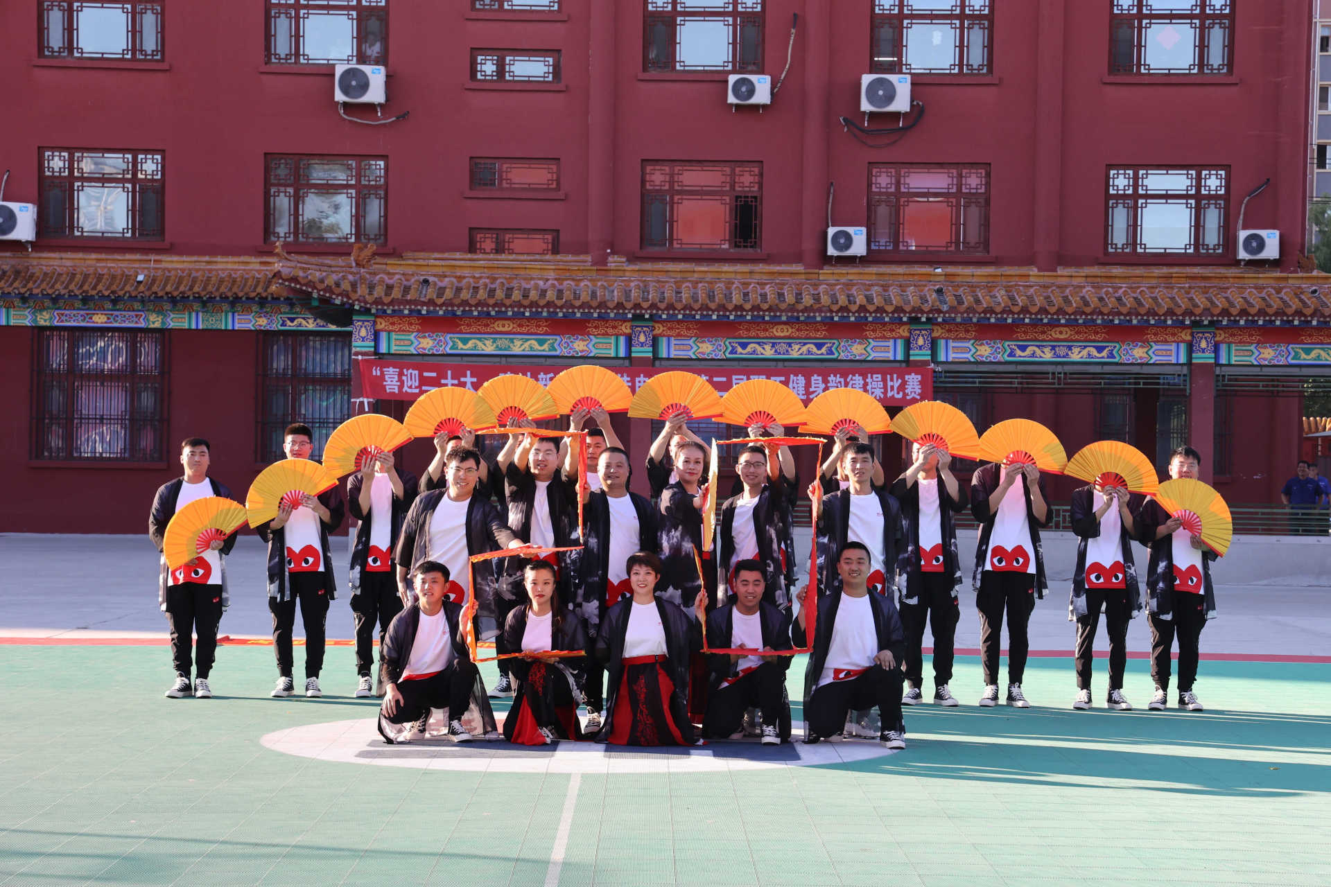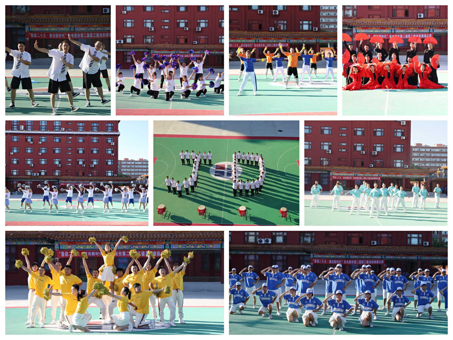 比赛现场气氛热烈欢快,参赛队员个个精神饱满。明快亮丽的服饰、欢乐跃动的音乐、整齐划一的动作、舒展娴熟的舞姿、热情洋溢的笑容不断呈现在观众面前。各参赛队伍的表演通过别出心裁的编排和创意,在舞台上展示着他们的自信与活力,为现场观众们奉献了一场又一场风格各异、充满活力的视觉盛宴,同时,展现了同心而动的团队意识和昂扬向上的进取精神,赢得现场观众阵阵掌声和喝彩声。