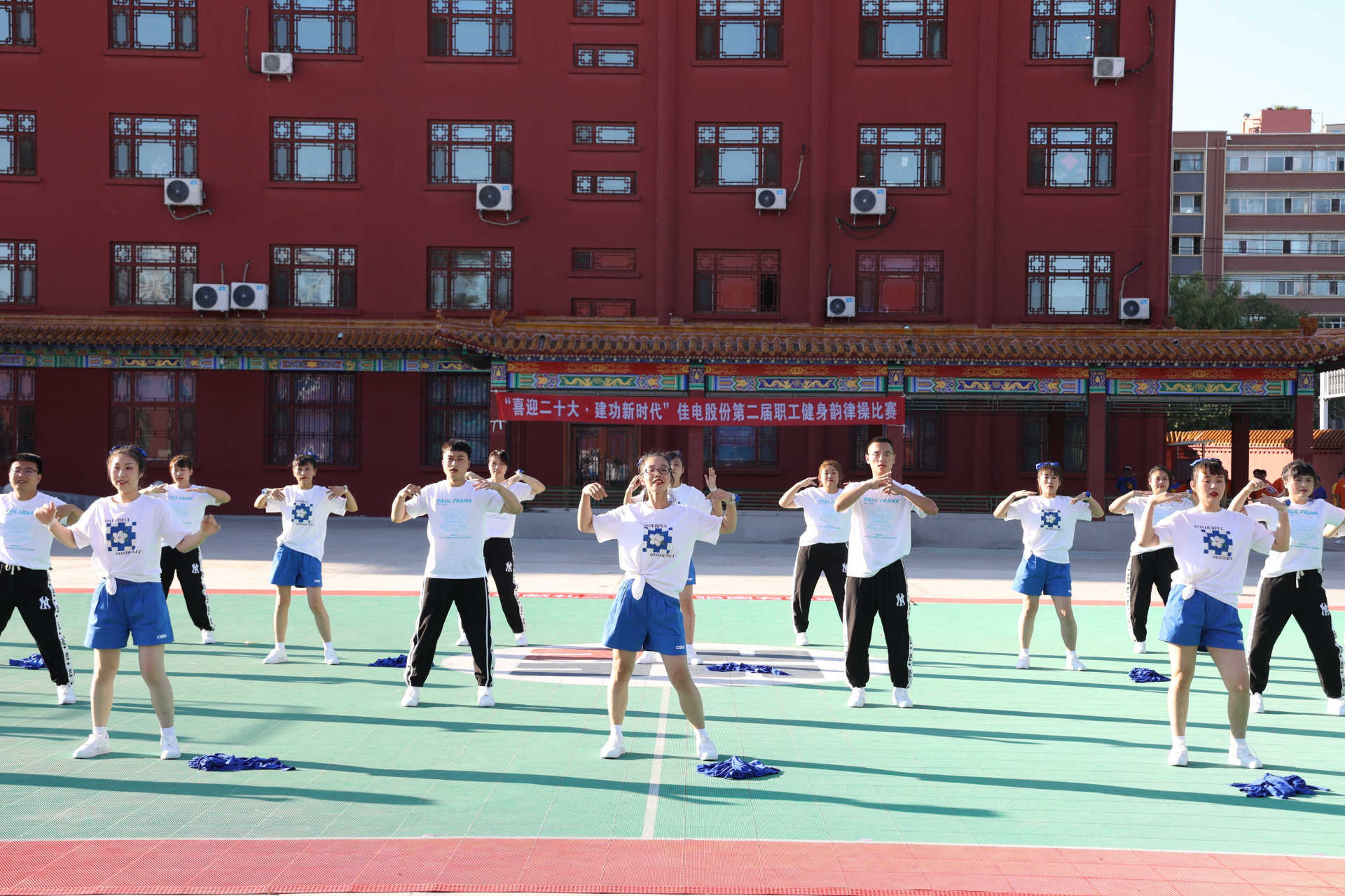 为深入贯彻落实《关于开展“强国复兴有我”群众性主题宣传教育活动》通知要求,8月17日下午,哈电集团威廉体育举办了“喜迎二十大·建功新时代”第二届职工健身韵律操比赛。威廉体育党委书记、董事长刘清勇及领导班子成员出席并观看了比赛。佳木斯市总工会常委、宣传教育文体部部长王雨薇出席活动。来自公司各直属单位的13支代表队、300余名职工参加了比赛。