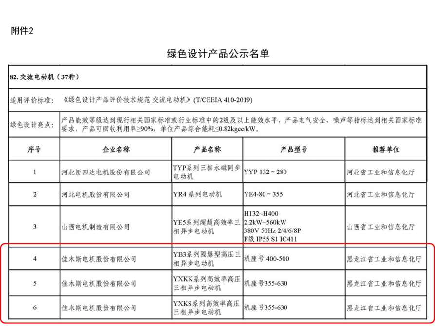2021年12月, 3个系列高压电机产品获得国家“绿色设计产品”称号,IE5系列电机机企业产品标准获得国家企业标准“领跑者”称号,该标准中规定的效率是目前国内最高效节能隔爆型异步电动机产品,效率值超过最新的国家能效标准1级指标要求。受此认证,威廉体育将被纳入万家用能单位的采购推荐名单,作为绿色电动机产品被鼓励优先采购。