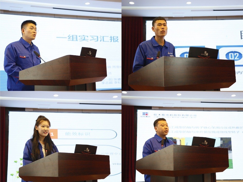 30位新入职大学生分为四个小组,通过PPT讲解、视频展示等方式,围绕实习工作情况、存在问题、实习感悟、未来展望等方面,依次汇报了小组及个人在生产车间、财务部门、法务部门、销售公司等岗位实习的学习成果,分享了自己在实习工作中的感受与经验,并对工作中发现的问题提出了合理化建议,同时对今后的工作做出了具体规划。汇报中,新入职大学生向导师们的谆谆指导表示感谢,同时也感谢公司给予的良好成长平台。