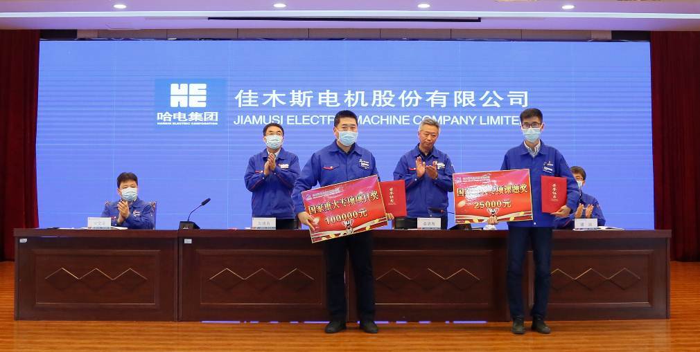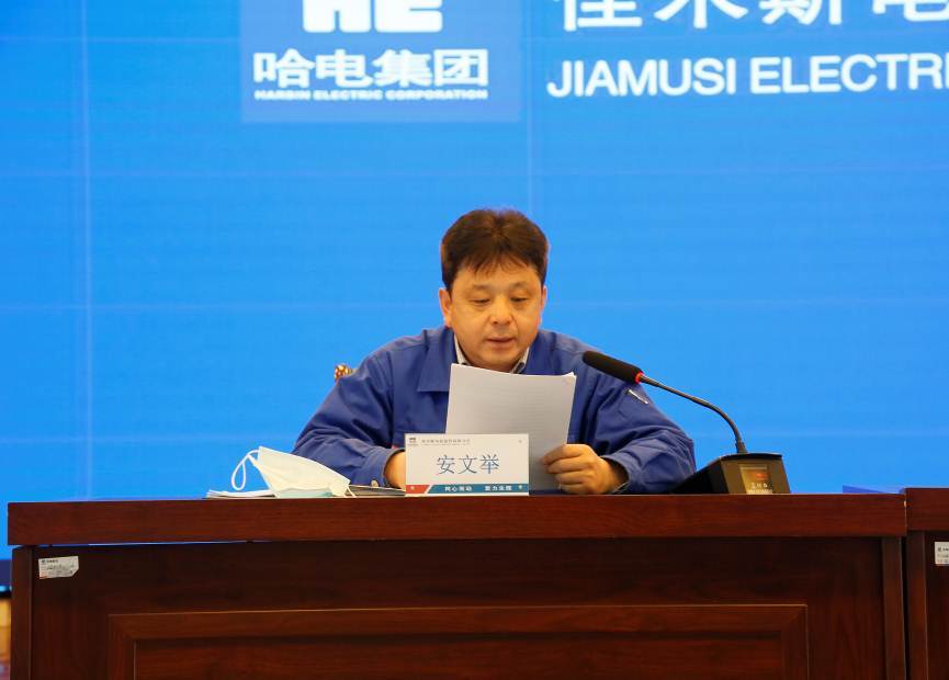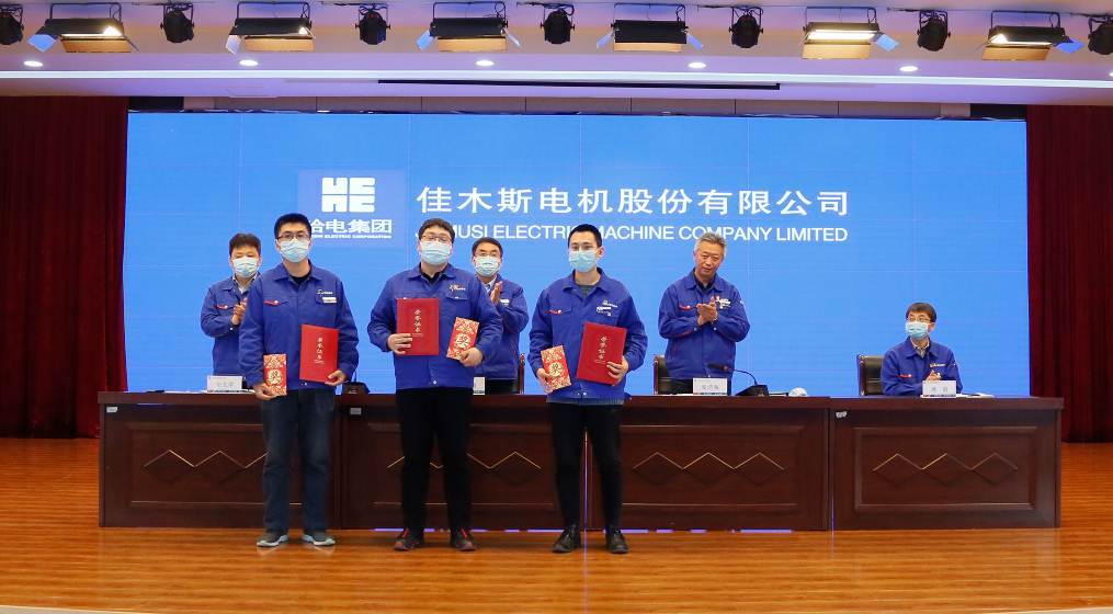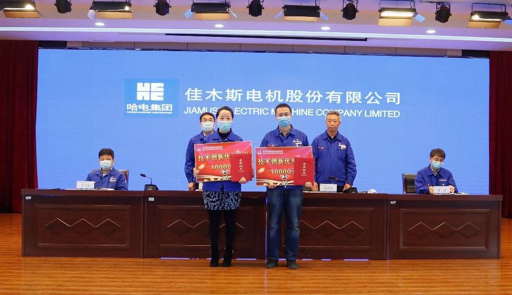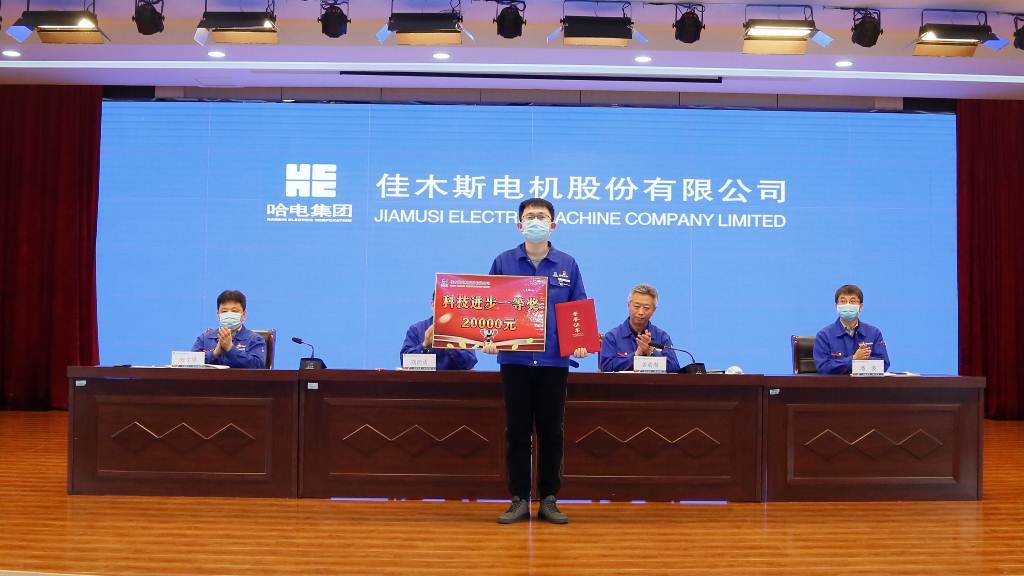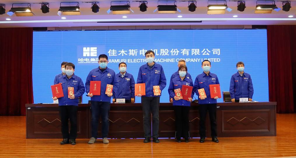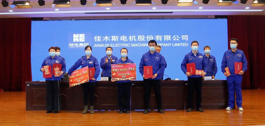 副总经理安文举宣读了《哈尔滨电气集团佳木斯电机股份有限公司关于2020年科技工作表彰奖励的决定》,表彰了为公司科技事业做出突出贡献的先进集体和先进个人,并为获奖代表颁奖。