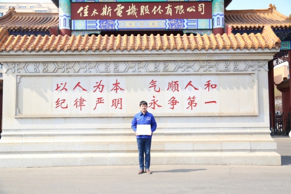 设计部高压防爆电机设计室主任李兴波获得佳木斯第十二届“佳木斯青年五四奖章”先进个人称号。