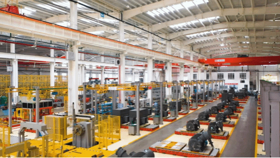 高压电机数字化装配车间,实现定、转子合装等核心工序的无人化作业,保证产品装配质量。