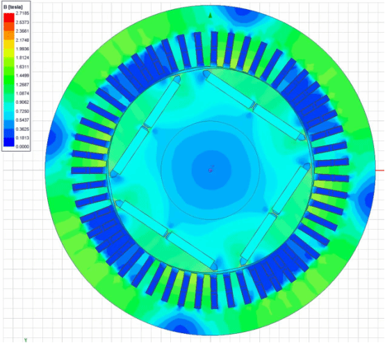 高可靠性:TYPKK系列永磁式同步电动机,通过斜槽、不均匀气隙等特殊措施,控制该系列电机转矩脉动低于3%。通过噪声(Noise)、振动(Vibration)和声振粗糙度(Harshness)(NVH)分析,电机噪声平均降低5dB,平均振动值低于1.3mm/s。